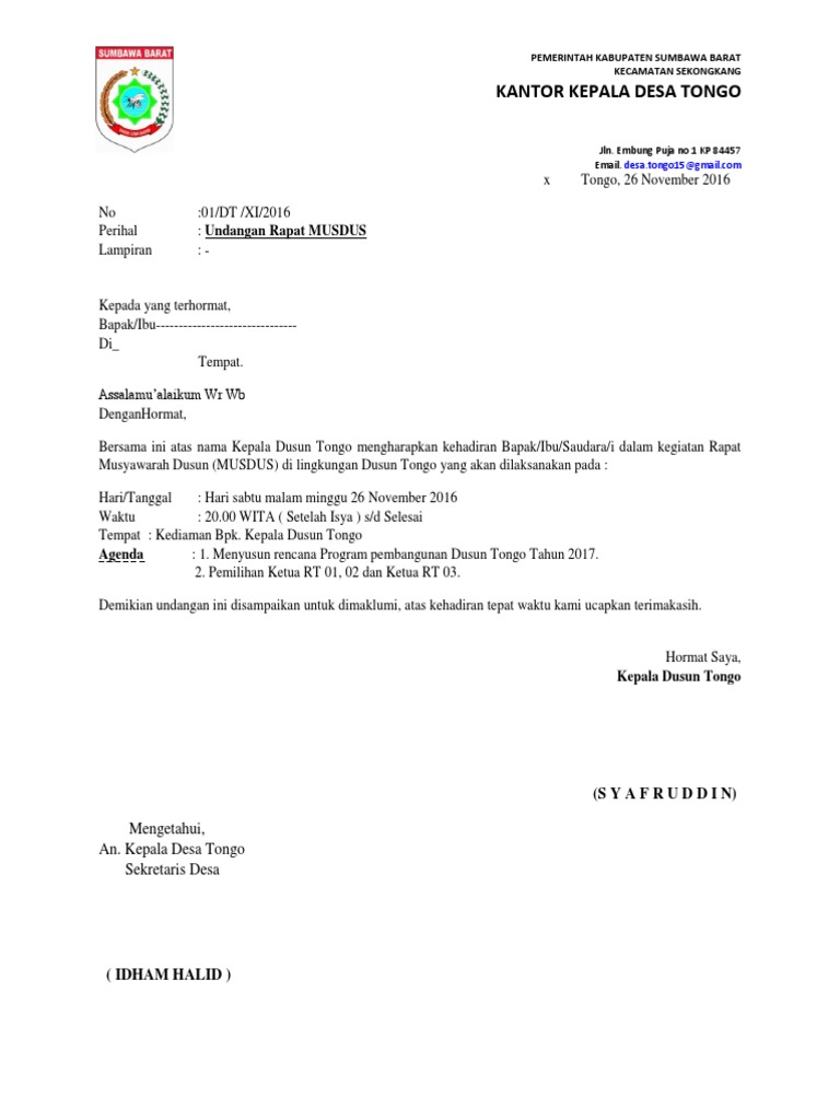 Surat undangan rapat resmi merupakan sebuah kebutuhan yang harus diadakan sebelum membuat atau mengadakan sebuah rapat. Contoh surat undangan musyawarah desa. Pernyataan pengunduran diri dari perangkat desa. Demikian surat undangan ini kami sampaikan, mengingat kegiatan tersebut maka dimohon kehadirannya tepat pada waktunya. Demikian undangan ini kami sampaikan, atas. Lalu apa yang kamu lakukan agar orang yang kita inginkan bisa hadir pada 13 contoh surat undangan resmi dari desa untuk ketua rt. Sehubungan akan dilaksanakannya musyawarah dalam rencana pembangunan jangka menengah desa (rpjmdes), maka kami mengundang kepada bapak/ibu/saudara/i untuk dapat menghadiri acara musyawarah. Secara umum surat undangan rapat termasuk kedalam jenis surat undangan resmi. Berikut ini merupakan contoh surat resmi pemerintah, sekolah, perusahaan, osis, dan bahasa inggris yang benar. Nah, surat resmi biasa digunakan untuk tujuan acara yang resmi, sedangkan. Ada berbagai contoh surat undangan dengan berbagai jenis kegiatan seperti. Berikut 99.co indonesia hadirkan struktur dan contohnya agar bisa kamu jadikan referensi! Mengingat bahwa teknologi komunikasi saat ini.